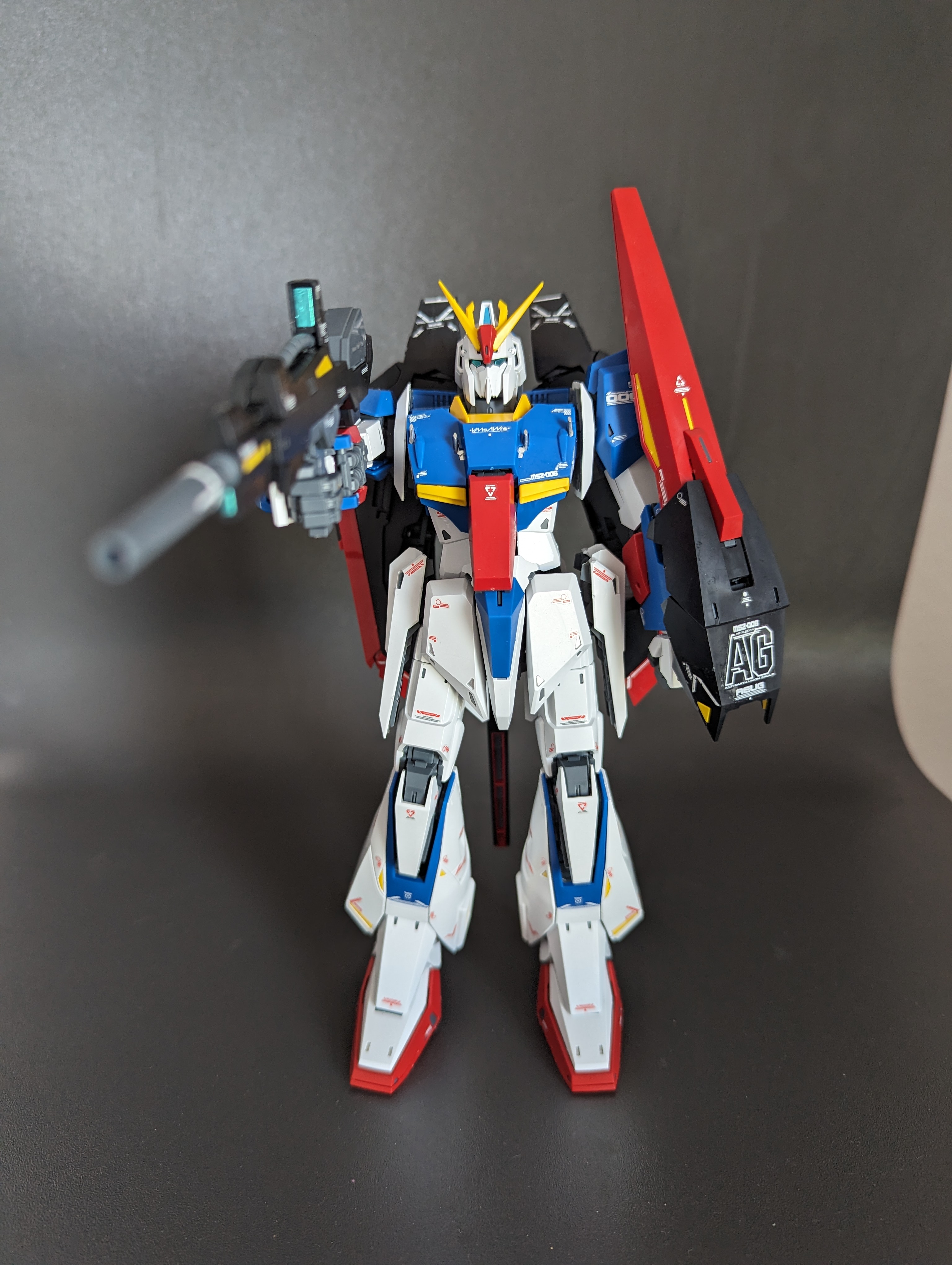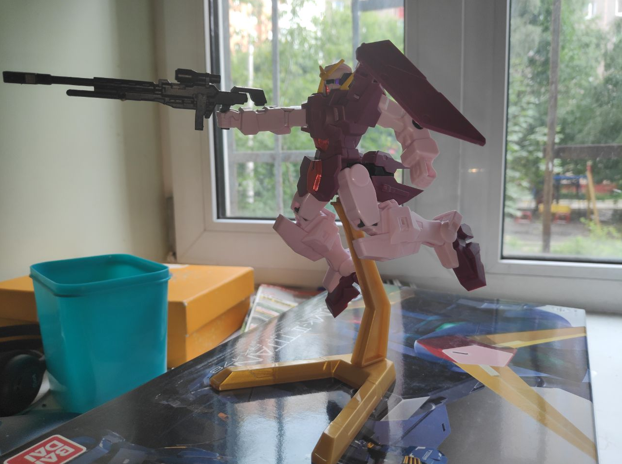 Добил наконец МГ Зету Верку. Что могу сказать, понравилась гораздо больше чем МГ деда. Очень стабильная модель, не разваливается, ощущается как фигурка прям. И строить ее было очень просто и без проблем. Еще у нее есть полная трансформация в самолетик но я ее еще не делал. По мне так главный минус кита это наклейки. Если бы я не был аутистом, то не клеил бы, но увы. И времени на эти наклейки я потратил гораздо больше, чем на собирание самой модели и я не шучу. Наклеек там около 200 штук я бы сказал, так как номеров 100+ и у каждого номера по несколько наклеек. Проблема в том, что они водяные. То-есть каждую наклейку нужно самому аккуратно вырезать ножницами, окунуть в воду, подождать пока она размякнет и ее можно отделить от бумаги, наклеить на модель, прижать ватной палочкой и убрать лишнюю воду, ждать пока она высохнет. A если поверхность неровная или грязная, то наклейки слетают от любого чиха. Но еще и чистить поверхность перед каждой наклейкой мне было в лом, и так столько времени проебал. A еще они оставляют водяные разводы, которые под углом хорошо видно. И несколько наклеек я тупо всрал, особо выделяется на щите. Короче гораздо проще и быстрее было бы тупо покрасить модель самому. Но это был мой первый кит с этими ебучими водяными наклейками поэтому еще не знал что там к чему.