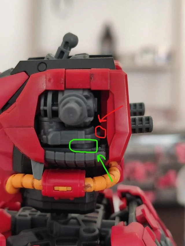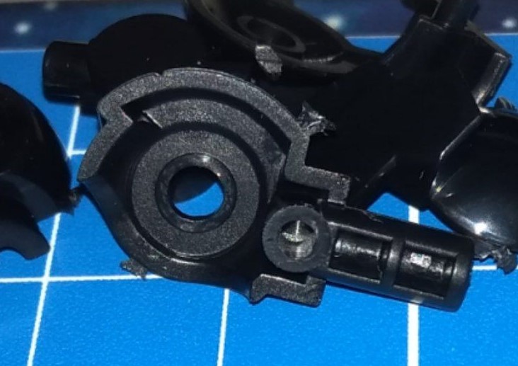 На тему Котобукии. Расчехлил Siren и почти сразу пример что нужно использовать местами клей. Это наплечник, в котором есть шариковое соединение с туловищем. Шарик на маленькой детальке, которая втыкается в основание наплечника. Если ее не закрепить ее клеем, то из-за лишнего трения сломается быстро. Фиксации двумя половинами недостаточно.