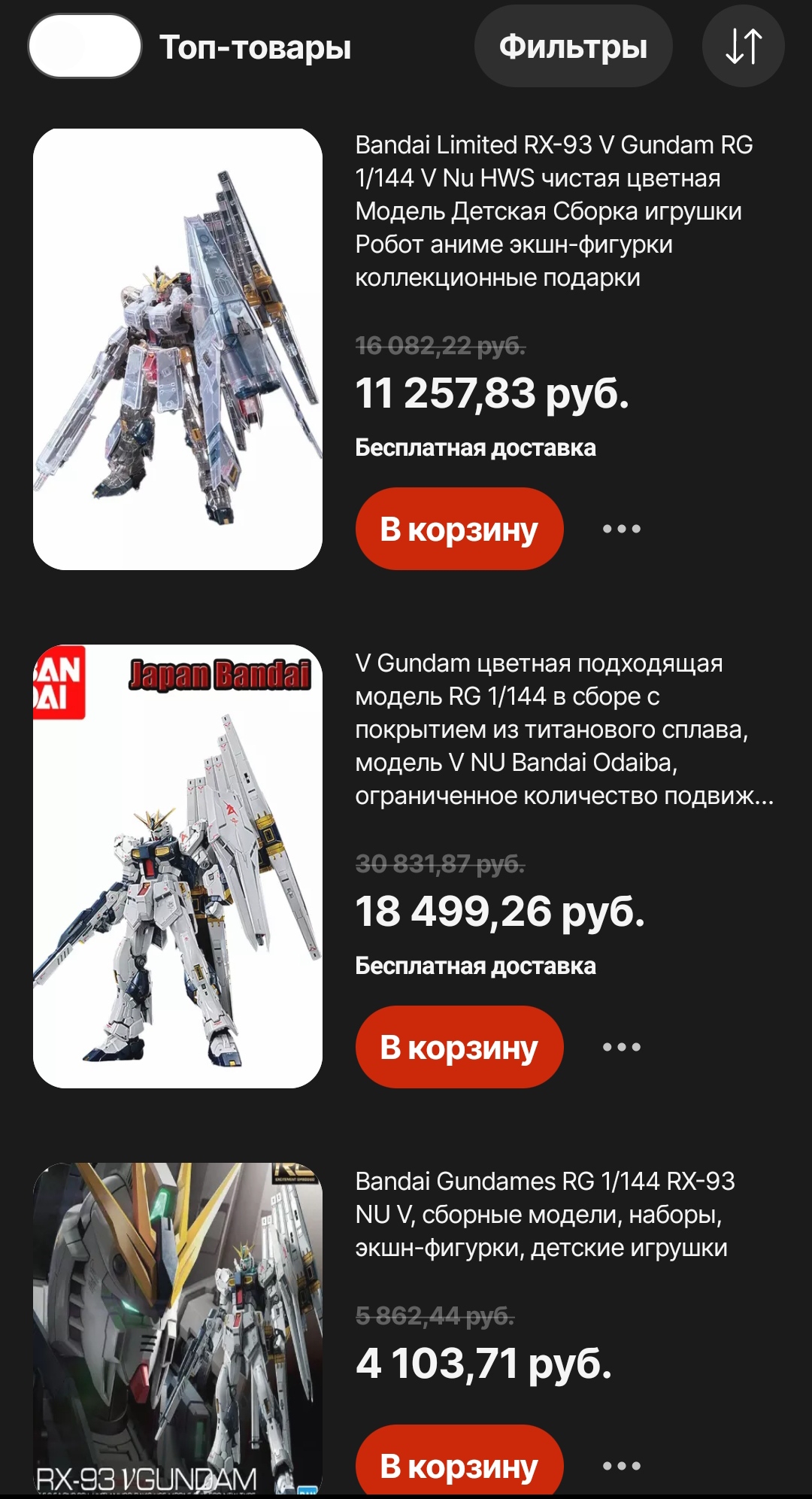 >>56577 Хз, я рейтинг продавцов обычно смотрю. Вот только сазаби доехал РГшный, всё норм только пиздец его долго собирать. Одни ноги как полноценная хгшка времени заняли. Все РГ такие долгие или это просто сазаби жирный? Думаю что-то с пика взять ещё.