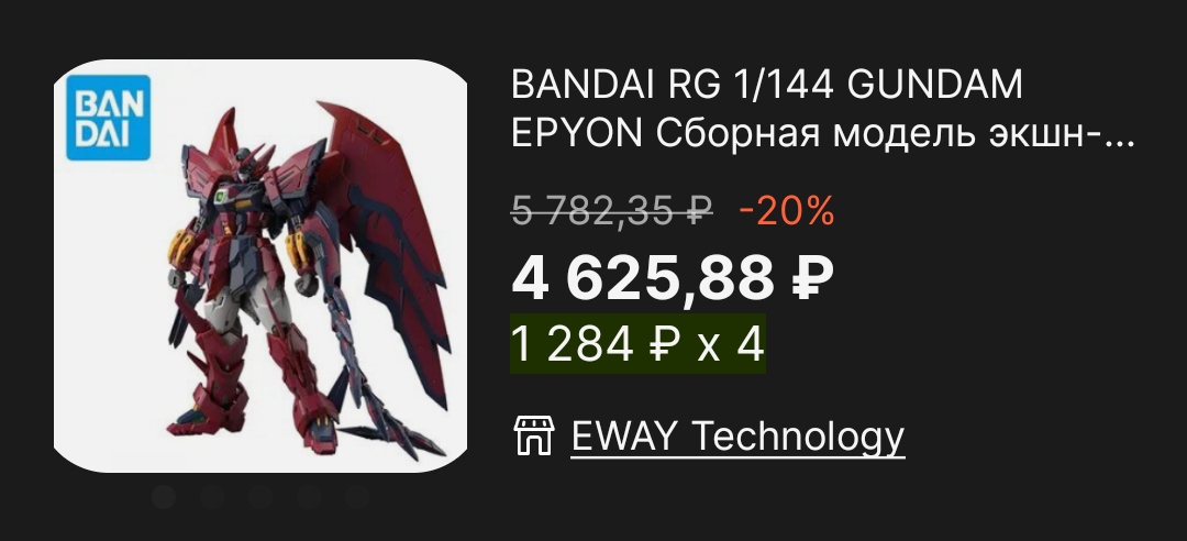 >>56578 В каком состоянии доехала упаковка? В целом все РГ долго собираются. Даже совсем мелкие типа Кроссбона, хоть там в ногах деталей не так много и тушка пустая из-за истребителя, зато в других местах хватает. На пике все РГ хорошие. Ню к Сазаби подойдёт как раз и модель отличная. Единорог очень занятная модель и любого стоит собрать ради опыта. Марк 2 это изначальная идея и фича линейки со "скелетом", которая работает как надо и просто классный классический дизайн. >>56577 Обычно по отзывам, названию, описанию и фоткам понятно, если есть Daban и прочие коверканья, то бутлег. Больше за доставку стоит переживать. Обычно отправляют коробку обернутой в воздушную подушку, но все равно умудряются помять. Есть придурки, которые коробку в целофановом пакете отправляют без защиты. Лишь единицы используют коробки из картона или пенопласта. Сейчас посмотрел свой вишлист везде даёт выбрать пункт выдачи. >>56579 Тоже хочется. Это же 3 модели на одной основе, Люпус Рексу только строение рук серьёзно поменять придётся. Можно даже четвертую в виде шестой формы оригинального Барбатоса сделать (конечно же будет p-Bandai).
