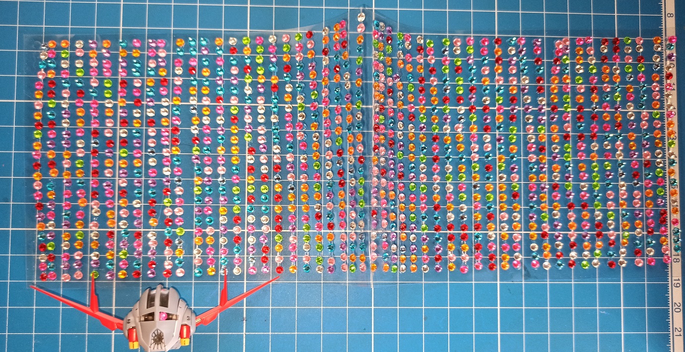 Очень неспешно собираю Гаогайгара. В процессе возникают разные идеи, а под рукой нужных материалов нет. Сперва хотел "фары" покрасить металликом. Потом вспомнил про стразы, 3мм свои прикинул, смотрелось прикольно, но слишком большие. С алика дождался 2мм и в самый раз. Спилил пластик и приклеил, интереснее чем пластик со стикером или краской.
