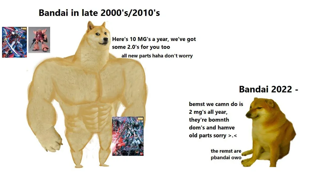 >>56677 Не только он, HGUC в 2022 последний раз выходил и это был один релиз. Смешно что это вообще гандам из Wing, то есть HGAC, которые все равно считаются за HGUC. RG тоже меньше стало, раньше бывало по 3-5 релизов помимо евангелионов. В прошлом году Год и Гао с молотком, в этом Эпион и вроде успеют релизнуть реколор Форс Импульса. Очень надеюсь это из-за того что бросили силы на Ведьму и дальше нарастят объем других линеек. Хотя будет же новая часть Сида, ага нарастят)