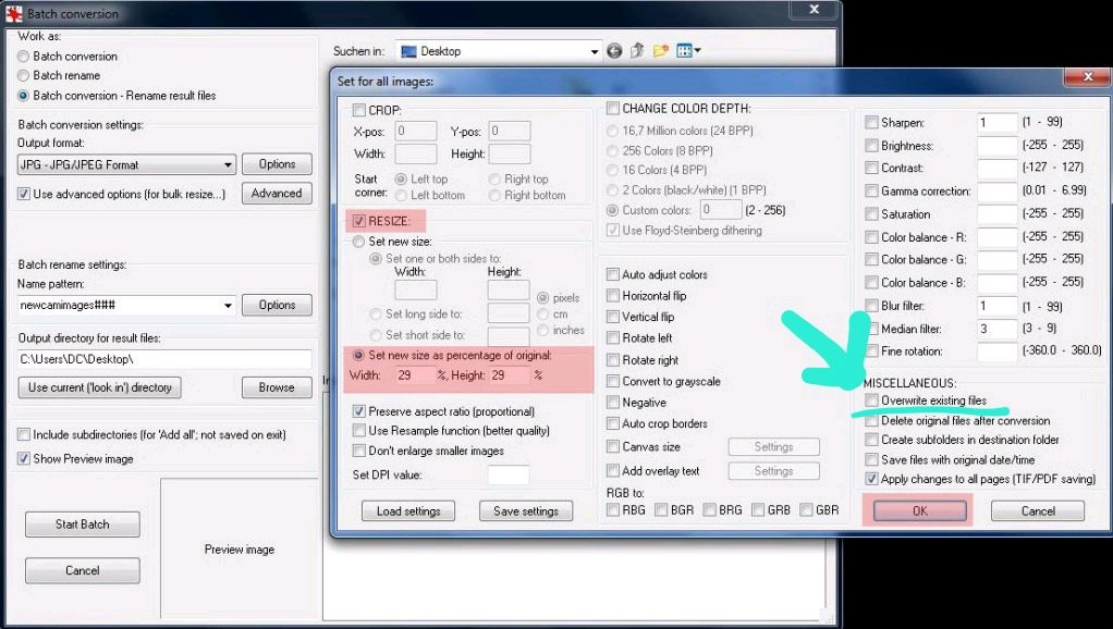 irfanview умеет пакетами обрабатывать изображения. Можешь поменять формат разрешение и прочее.