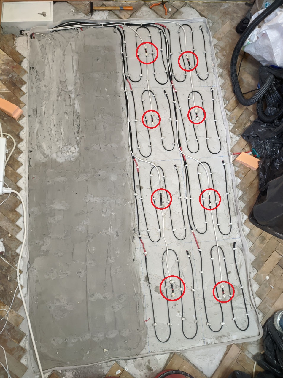 >>587765 >Программно? Припаял на лишний пин ESP32 реле и каждые 16 секунд проверяю надо ли включить или выключить его. Реле разрывает входящие 220 на симисторы. Питание на ESP32 идёт от внешнего отдельного БП. >как обратную связь организовал? В центре каждой зоны по термистору. Взял 4х жильный экранированный провод и впаял в него термисторы. По 2 термистора на провод для двух зон.