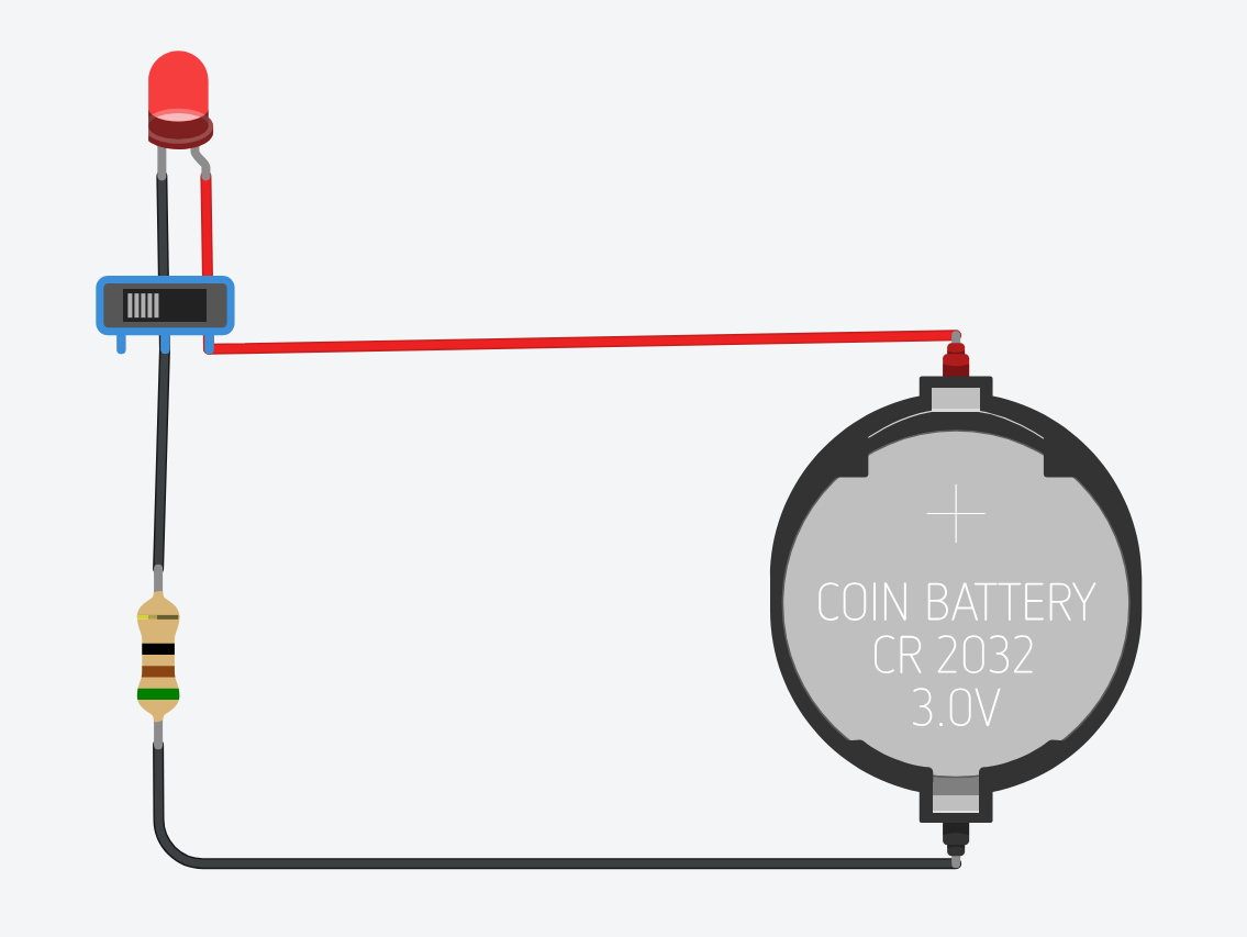 Спаял схемку, (пик 2). После вставки батарейки светодиод засветился, я перещёлкнул переключатель, светодиод погас. Снова перещёлкнул - светодиод перестал светиться. Распаял всё, проверил отдельно батарейку и светодиод - работают.
