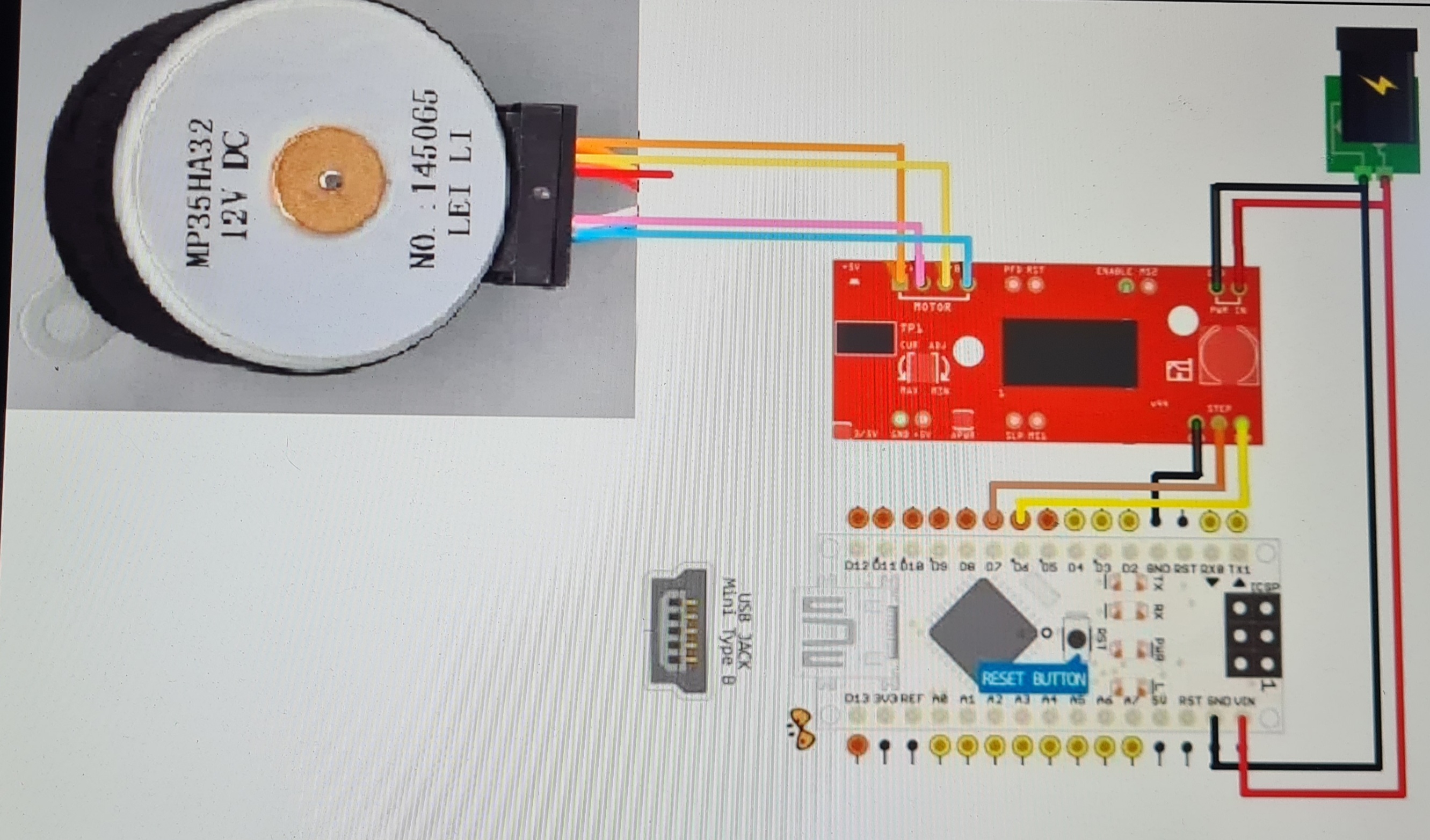 Подключил шаговый моторчик по такой схеме (часовой привод для телескопа). По идее он должен ровно вращаться с заданной скоростью при подключении питания. Прошивку на ардуино удачно загрузил, все провода точно ровно подпаял, подаю питание 12 V 500 мА (блок питания от лампочки), моторчик вместо того чтобы вращаться просто резво вибрирует, внутри слышны щелчки. Что я делаю не так?