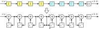 >>277806Если бы ты когда-нибудь слышал про усталость металла эквивалентные преобразования, то ты бы понимал, что схема >>277629 эквивалентна схеме >>277806. Домашнее задание: определить вид БИХ-фильтра, который получается после приведения схемы >>277629 к виду >>277806.