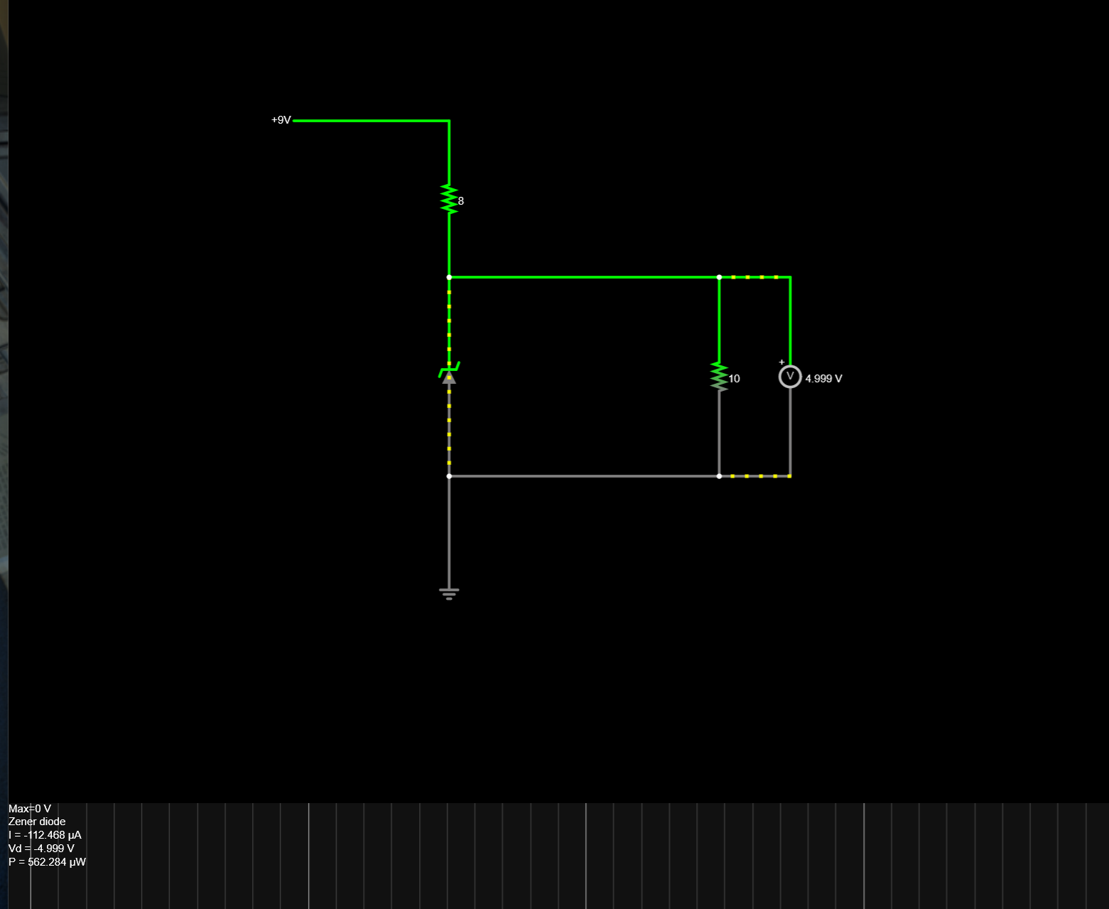 Помогите понять правильно ли я понял расчёт стабилитрона. Допустим у меня есть источник питания 9В. Есть нагрузка 10Ом, на которой я хочу 0,5А. Значит напряжение стабилизации должно быть 5В. Есть стабилитрон с параметрами Vzt=5,1В, Izt=240мА, Zzt=1,5Ом. Ток через стабилитрон тогда = 0,24А - ((5,1В-5В)/1,5Ом)=0,173А. Тогда сопротивление балластного резистора =(9В-5В)/(0,173А+0,5А)=5,94Ом. Так?
