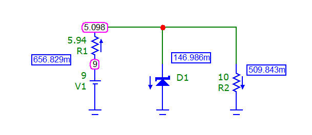 >>584627 Как ты собрался снимать ток в 0,5А со стабилитрона с током стабилизации 0,24А? Нагрузка на стабилитрон должна быть как можно меньше, в идеале не больше 20% от тока стабилизации. Либо ставь эмиттерный повторитель, либо просто балластный резистор последовательно с нагрузкой без всяких стабилитронов.