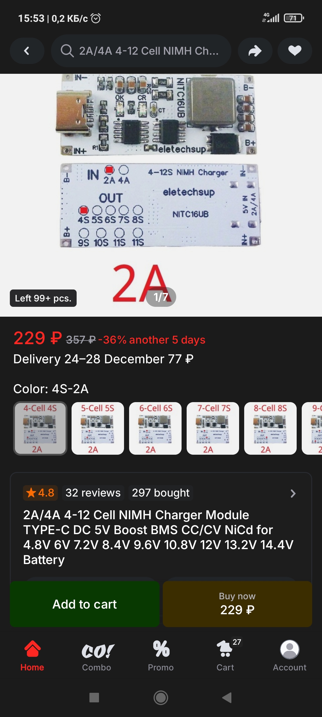 >>586279 Ni-mh имеет хитрую процедуру отлова окончания зарядки, так что на коленке из говна и палок вряд ли. Уверен что процедура тренировки тоже мудреная, но гуглить лень. За цену такого порядка можешь для зарядки взять модуль на али на нужное напряжение, пикрил. Если у тебя родной зарядки от него нет. А разряжать лампочкой. Если в шуруповерте нет фонарика.