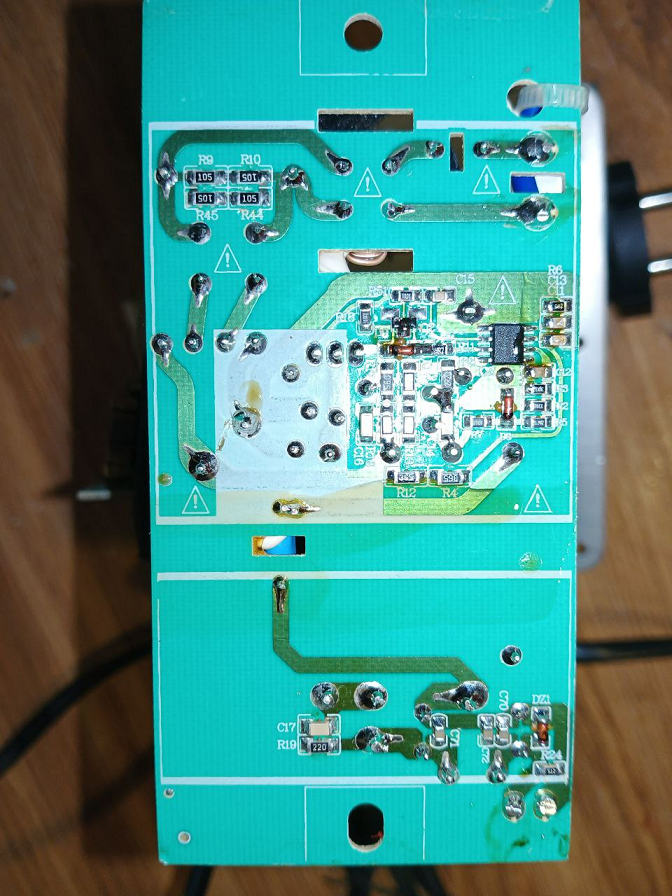 Есть такой вот блок питания, на выходе которого 0 после отключения света уебал бы всех этих электриков от жкх; будем надеяться, что плату устройства он защитил На входе 230 нормально. Предохранителя не вижу. Из конденсаторов только один синий выглядит слегка горбатым, иногда такие еще сто лет работают. Остальные визуально в порядке. В отключенном от сети состоянии бахнул меня током до ожога на пальце.