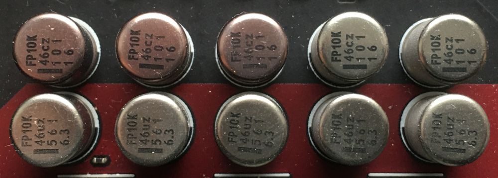 Суп, аноны. У меня есть шизовопрос. Опять. Вроде тут еще не спрашивал. Есть нерабочая материнская плата, на ней куча компонентов, и некоторые из конденсаторов имеют отличный от других цвет - медно-золотистый вместо здорового бледного алюминия. Причем, расположены они по всей плате. Пик один, обрезка фото, где-то внизу платы. Пик два - в цепи питания процессора, пик три в цепи питания ОЗУ, вид немного сбоку. Естественное солнечное освещение, камера передает чуть всрато, но вроде различить можно. Маркировка одинаковая, но цвет различается. Вопрос: втф? Это вообще нормально?