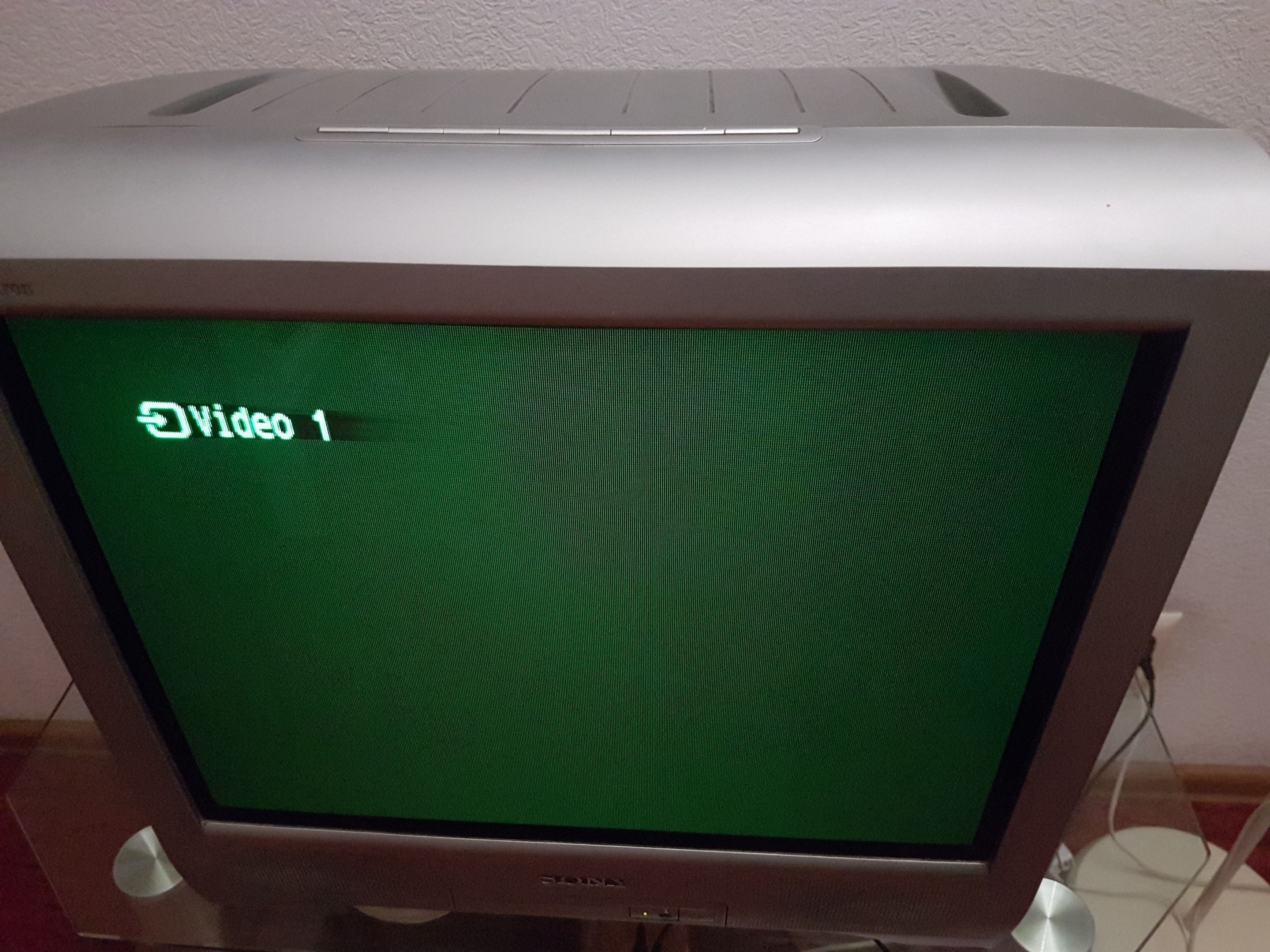 Усачи, подскажите. Модель точно не знаю. Тринитрон середины 90-х, 14 дюймов, у которого экран прямой только вертикально один в один как на прилагаемом фото. Пульт только чёрный. Используется как монитор для цифровой ТВ-приставки через адаптер RCA-скарт. Зимовал на даче. Весной включили, сразу изображение стало чуть розоватым и появились зелёные шлейфы от некоторых участков изображения тянущиеся вправо. Сфотографировать забыл. Ну, например тёмная башка на светлом фоне должна быть без артефактов, а из неё флаг зелёный вправо тянется вполовину или в целый размер башки.
