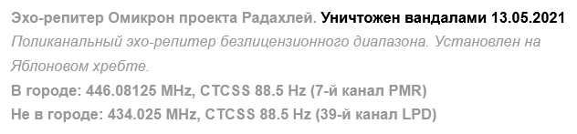 >>562228 Обычно кто то из местных радиолюбителей имеет выход на структуры жкх, а то и сам их обслуживает. Просто спроси в местном чате, подскажут, помогут.