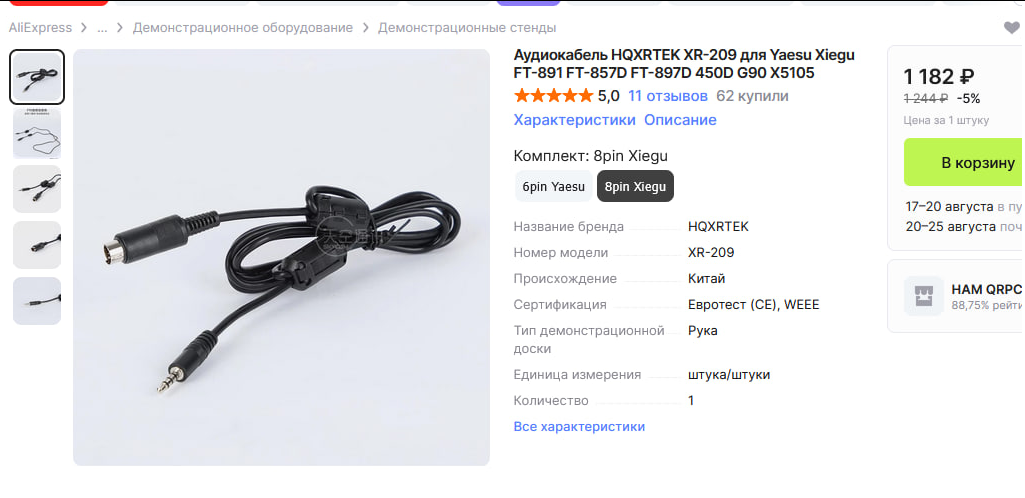 ПаRни, затупил ёбана рама, заказал не тот кабель, а посему продам кабель-audio 8pin Xiegu для работы в цифровых модах с трансиверов Xiegu. Случайно с алика заказал не тот бляха, мне надо было 6pin yaesu кабель…