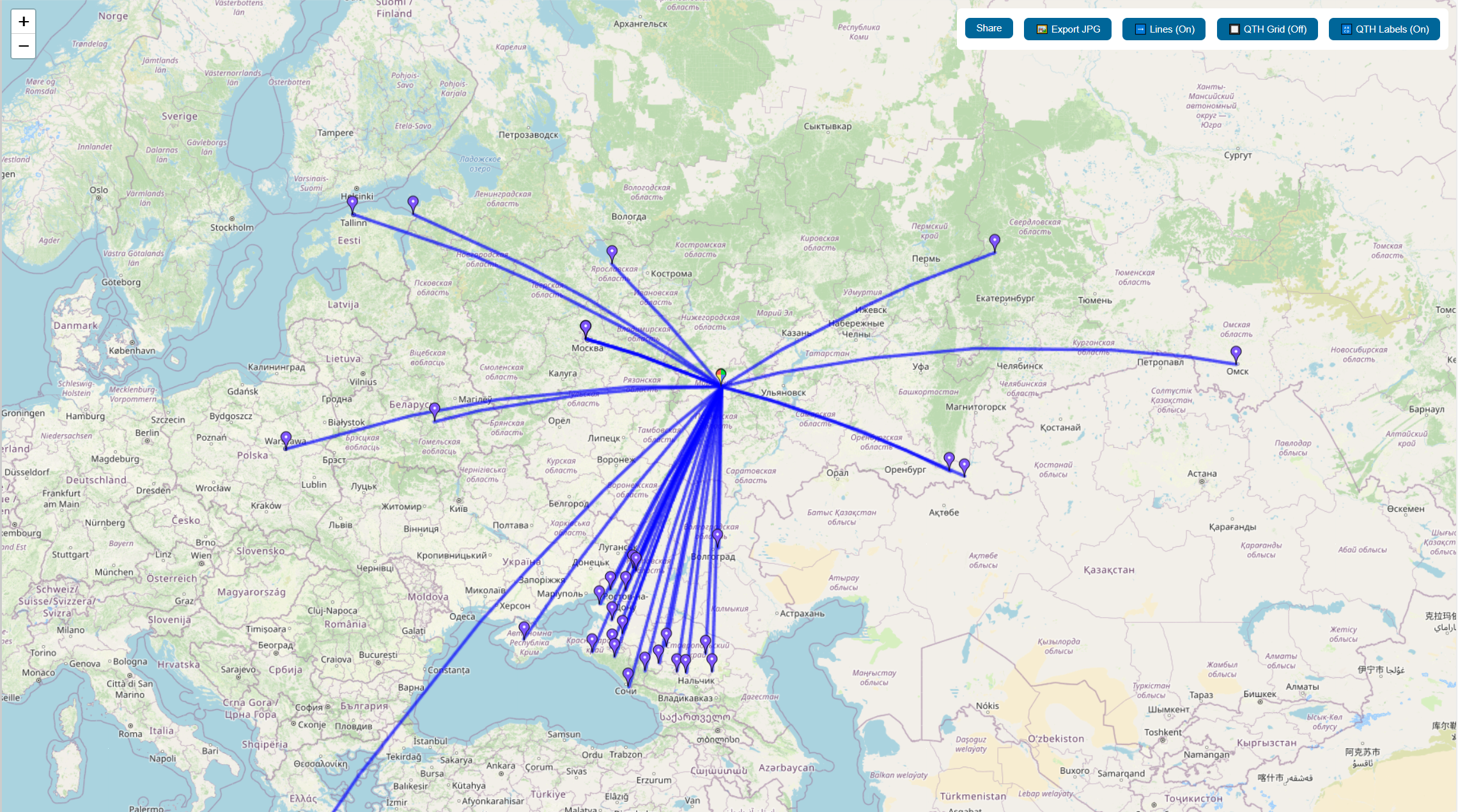 На УКВ в целом связь делится на два типа: связь в пределах прямой видимости и связь с отражением от чего-либо. Выше 1200 МГц уже и прохождения реже и стремительно падает число корреспондентов. На 1296 МГц ещё можно связи проводить в FT-8 на удаче повернув антенну в сторону какого-то крупного города или региона. А вот на 5.6 ГГц жизнь есть фактически только в EME связях или вовремя полевого дня и то, в центральной части РФ по сути.