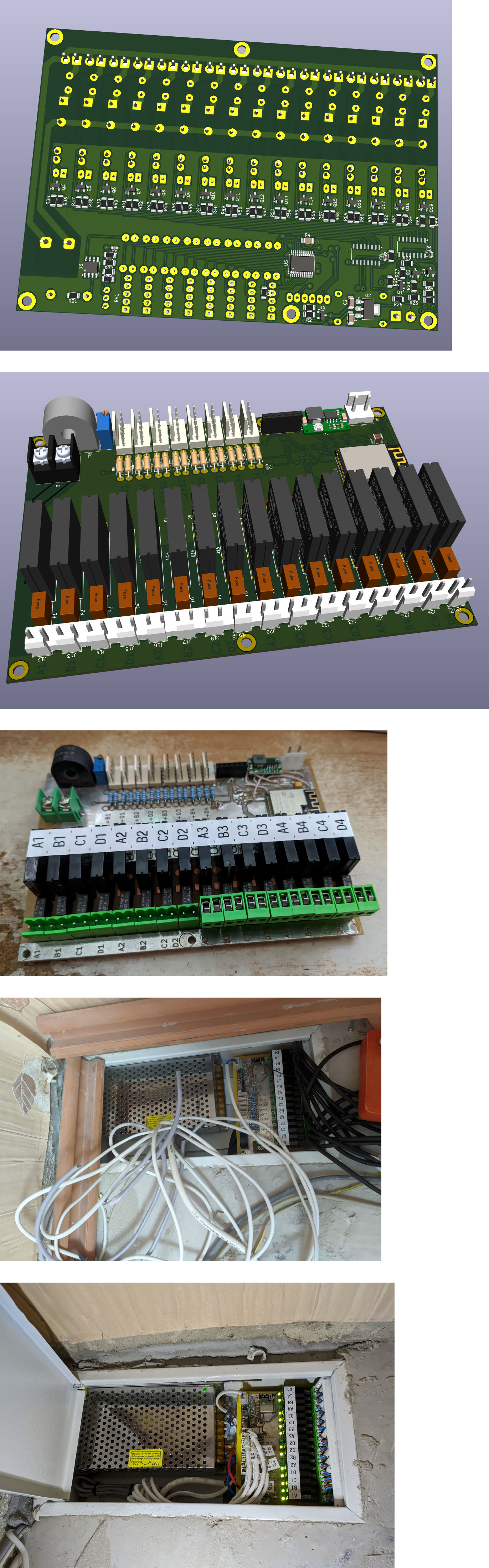 >>587765 >Программно? Припаял на лишний пин ESP32 реле и каждые 16 секунд проверяю надо ли включить или выключить его. Реле разрывает входящие 220 на симисторы. Питание на ESP32 идёт от внешнего отдельного БП. >как обратную связь организовал? В центре каждой зоны по термистору. Взял 4х жильный экранированный провод и впаял в него термисторы. По 2 термистора на провод для двух зон.