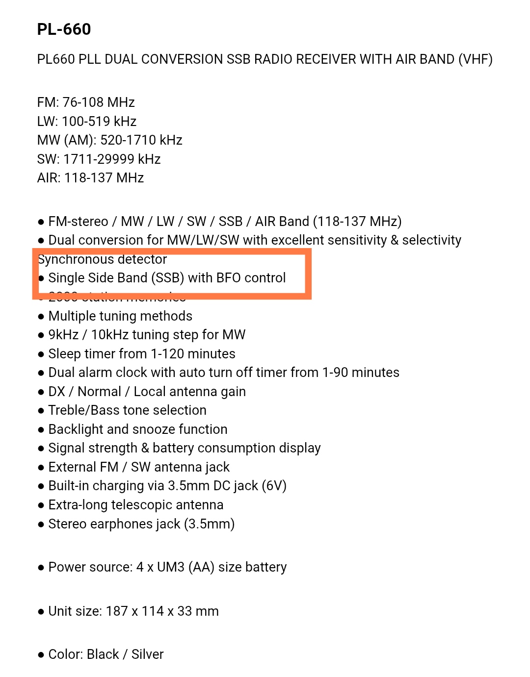 Из минусов: - Неудобно управлять одной рукой, в этом плане Tecsun PL-360/365/368 обставляют ее как нефиг делать; - Очень чувствительный валкодер, чуть задел и уехала частота; - Затыкается на большую активную антенну. Придется в окно выкидывать проволоку, похоже.