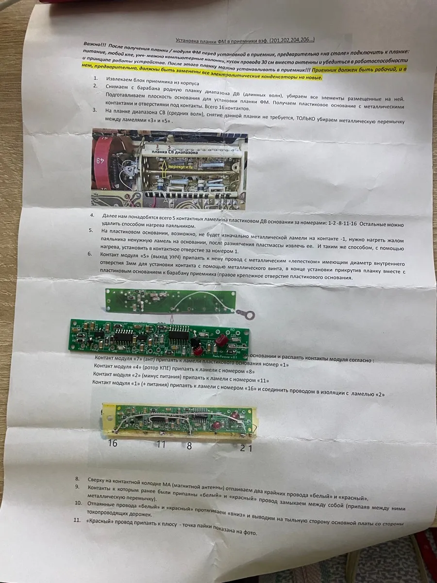 Также в "новой" заменил С27, С29, С22, С26, С31. Замена С20 и С13 на новые не дала ничего хорошего, приемник самовозбуждался. Запаял обратно те, что стояли и всё наладилось, тем более емкость у них еще хорошая была очень. В установке новых, полагаю, я проебался по напряжению. Также была проблема с исчезновением звука при обратной сборке корпуса, оказалось, что провода идущие на вход наушников переломились и при разборке контакт есть, а если собрать приемник, контакт нарушается. Пришлось изъебнуться и наколхозить новые провода не так, как были старые, но работает и ладно. Подключать туда советскую гарнитуру я не планирую, а всрать туда "джек" всегда успеется. В целом мне понравилось звучание приемника, насыщенный звук, нормальная избирательность. Доволен, в целом. Почти все советские приемники четвертого класса, которые я хотел, я собрал уже, надо на класс выше прыгать. Если кому интересно, хроника моей шизофрении: