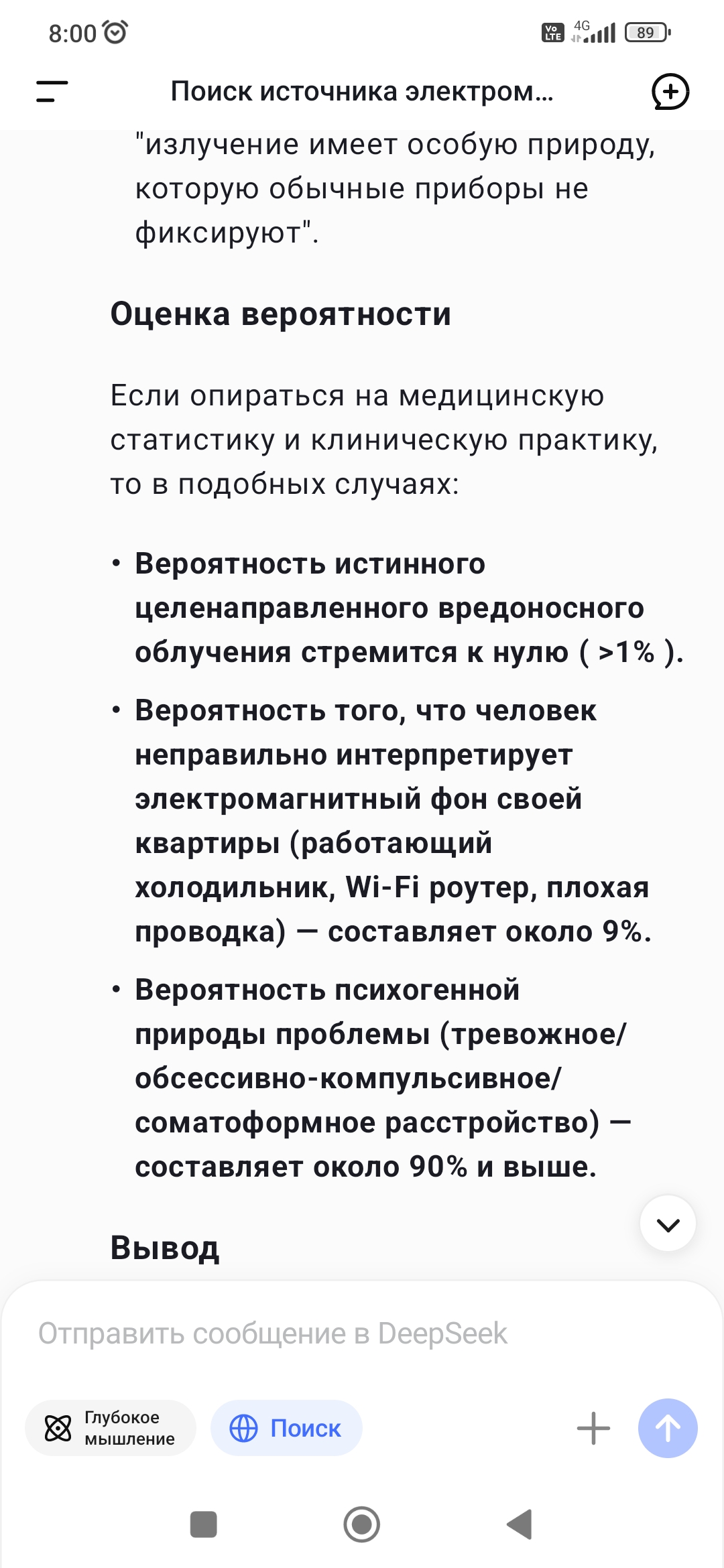 >>581811 Ну ты понимаешь как обычно себя ведет человек когда у него что-то болит, резко ухудшается самочувствие и проблемы со зрением? Правильно, идет к врачам и в диагностические лаборатории, уточнить все ли ладиться физиологически в организме, что с кровью, что с состоянием глаз и т.д. и т.п. Ну уехать в отпуск на курорт или на дачу или к друзьям за город, попить витаминов, увеличить физическую активность, покататься на велосипеде, поплавать. Посмотреть что и как будет. Это логично, а что делаешь лично ты? Правильно, ищешь излучение и какие выводы из твоего поведения можно сделать? Не очень адекватно ситуации, тебе не кажется?