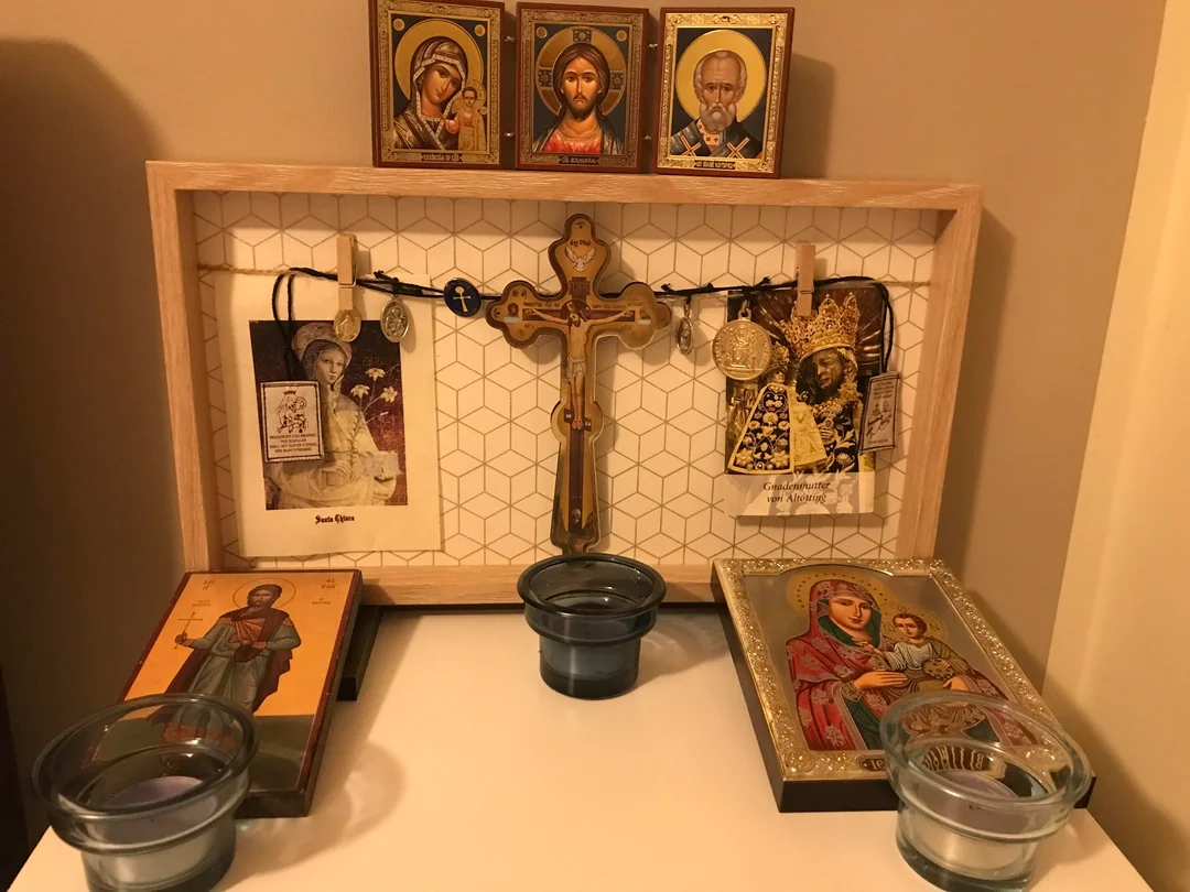 Аноны, какие типы домашних христианских алтарей вы предпочитаете и как лучше всего организовать пространство для чтения и молитв, зажигания лампадки, фимиама? Как часто вы используете алтарь? Помогает ли вам в вере наличие такого особого места? Фотографии взяты из инета для привлечения внимания и для приглашения к обсуждению.