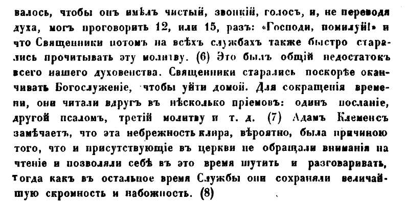 Таков убо есть обычай земли тоя, и се есть неписан закон, земский обычай, якоже прежде рекохом; о Рустей же земле ин обычай и ин закон: и аще убо имеем питие пияньственное, не можем воздержатися, но пием до пияньства. А еже повелевают Святии отцы питии по чаше, или по две, или по три, сего мы ниже слышати хочем, ниже ведаемъ меру чаше чаша онех; но сицева мера наша есть – егда пияни будем, яко же себе не познавати, ниже помнити, множицею даже до блевания, и тогда перестанем пить.