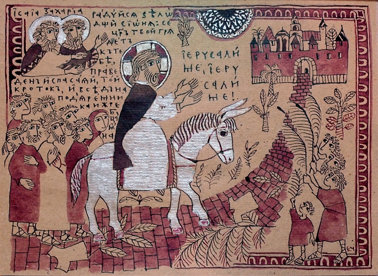 >>1122029 Это художница Елена Черкасова. У картин ощущаются вайбы Древней Руси, эфиопского искусства, Нико Пиросмани и Марка Шагала. Много всего переплетено.