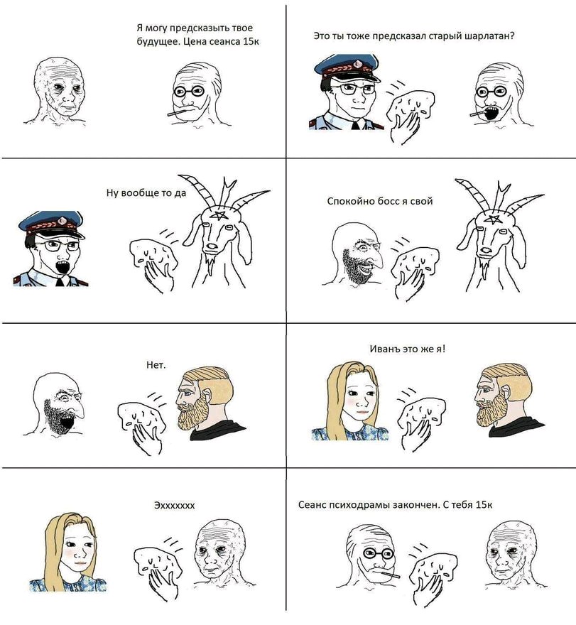 Православная тян, ожидание: добрая, няшная, читала Писание, здоровый образ жизни, девственница, ищет серьёзные отношения… Реальность: ебётся с 14, наркоманка, три последних парня — сатанист, муслим и нью-эйдж обдолбыш, пошла в церковь по совету психолога из тик тока, Библию не читала, потому что скучно.