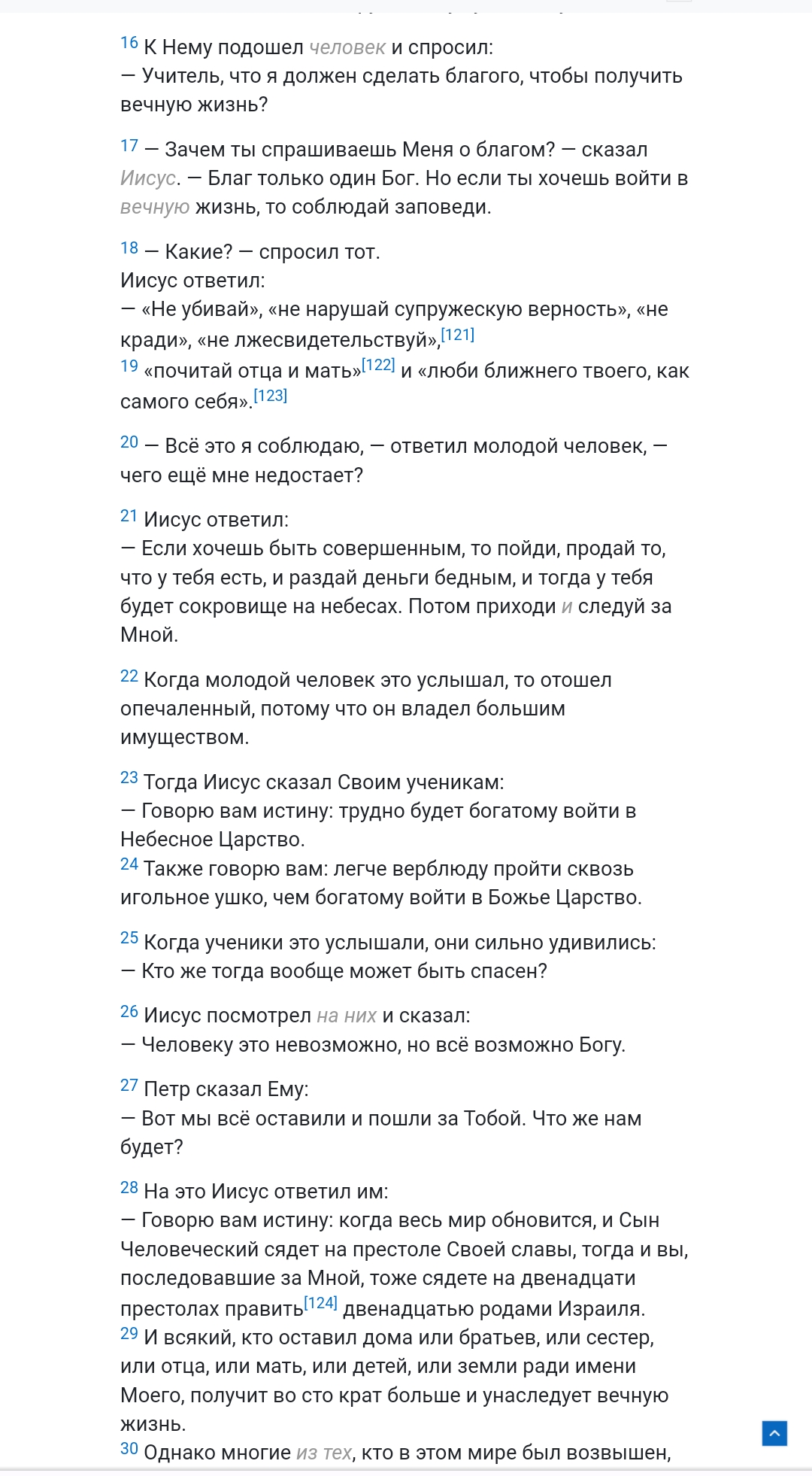 >Оставлять семью и богатство ради небесного царства не нужно! Твердо и четко! >И вообще христианство это про накопление богатства, качалку и развитие своей семьи, бизнеса