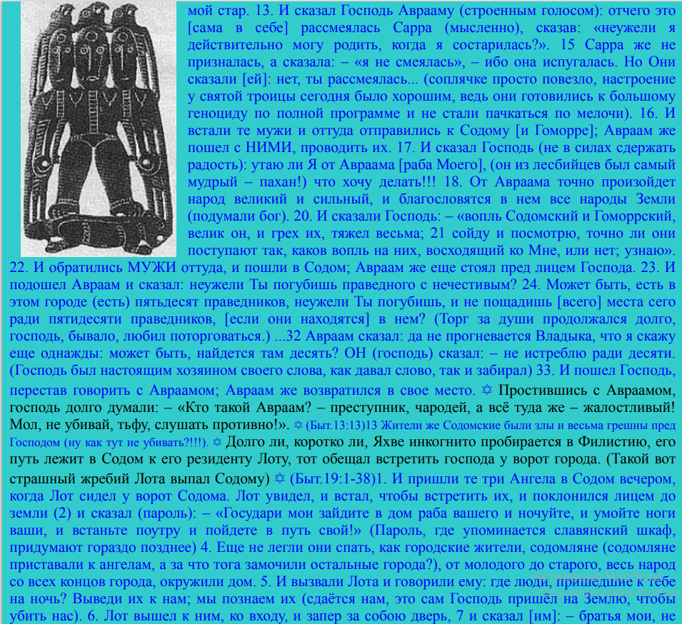 То есть когда в Библии написано, как герой евреев убил челюстью осла тысячи человек, это враньё древних людей. Но рядом с этим враньём какие-то правдивые слова, которые раскрывают природу Бога.