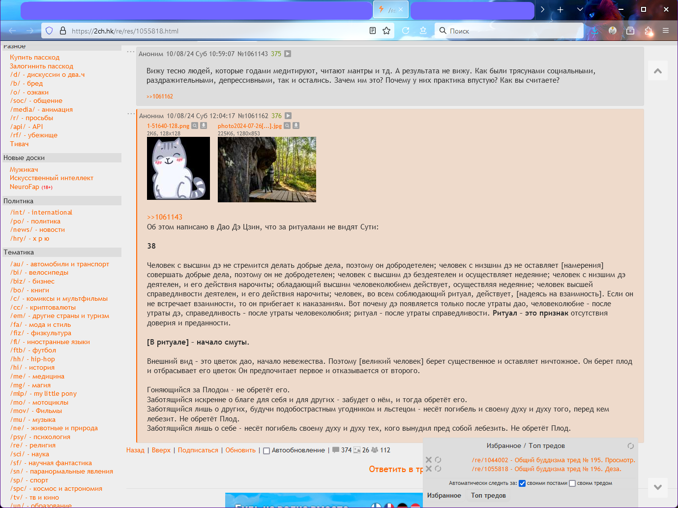 >>1130849 Лучше не вкатывайся в течения, а взвешивай каждую тему самостоятельно. Там почитал ПК, там посмотрел что у махаянцев, там йоба-техники в тибетцев глянул. Ты же пынямаешь, что все эти деления это как раз то, с чем надо бороться? Они учат примерно одному, но разными методами. Так почему не брать осознанно то, что работает, и убирать то, что не работает? Это как "сап двач куда вкатиться: в рпц, в католичество, протестантизм или...", а правильный ответ: не надо привязываться к обёртке, надо видеть начинку конфеты, а она у них в целом одна, если убрать политизированность ответвлений и косяки конкретных людей. По совету анона отсюда, прочитал у Саваки Роси. Он короче использовал в русском переводе термин "безумие толпы" вроде, ну это что-то вроде массового психоза, но в плане омрачений. Он говорил "монах, который всегда носит мирскую одежду, победил в себе безумие толпы", это значит что чел перестал привязываться к внешним атрибутам, он начал РАКАТЬ уже внутренне!