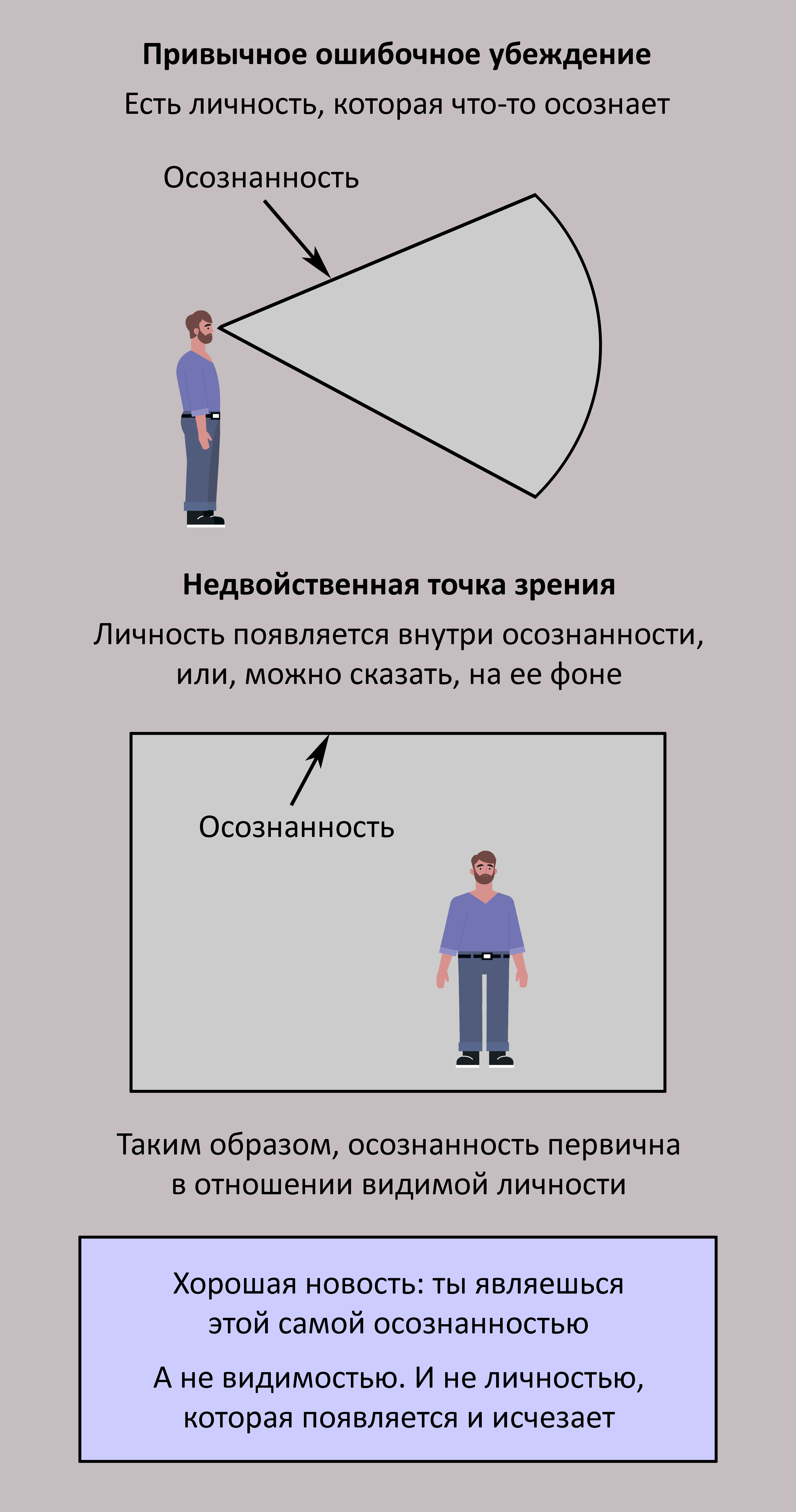 Запилил перевод на русский и графическое оформление случайно найденной картинки про недвойственность. Недвойственность в махаяне и является сутью просветления. Наглядно и доступно, как ориентир для личной практики