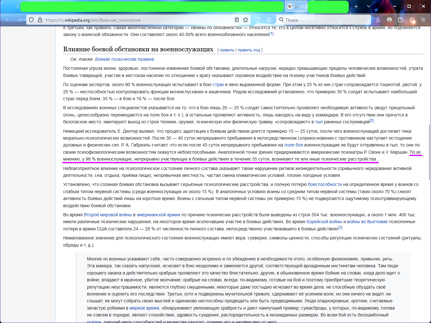 Зарабатывают психические отклонения за 35 суток психического и физического напряжения. (Дело не в самых боевых действиях, ибо глядя на них по интернету, подобное не испытываешь в такой же степени. Дело именно в напряжённости обстановки по совокупности окружающих стрессовых факторов).