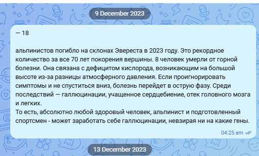 Здоровые люди, занимающиеся спортом, гибнут из-за того, что перестают контролировать ситуацию, перестают её адекватно оценивать в определённый момент.