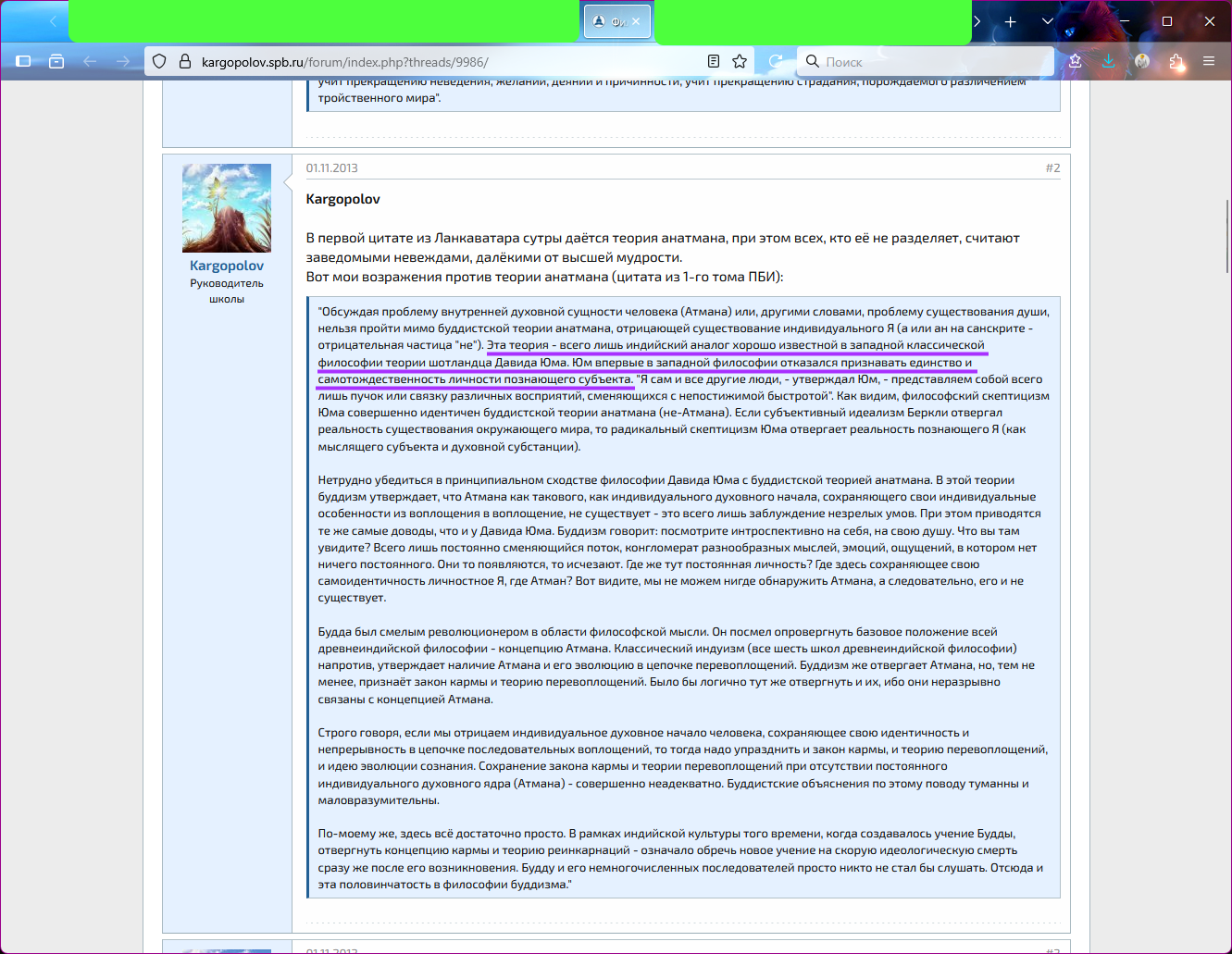 >>1145804 >>1145806 >Я весь тред демонстрирую ваши ошибки Ты весь тред демонстрируешь лишь свою неспособность понять что в буддизме карма/ниббана это не онтологические сущности, а оперциональное описания процессов.Это феноменология. Больше с тобой не о чем говорить если ты не способен это усвоить. Прости, диалог окончен. Буддизм не для тебя, иди ищи и доказывай абсолют в других тредах, например в христианском. Я покидаю христоловушку