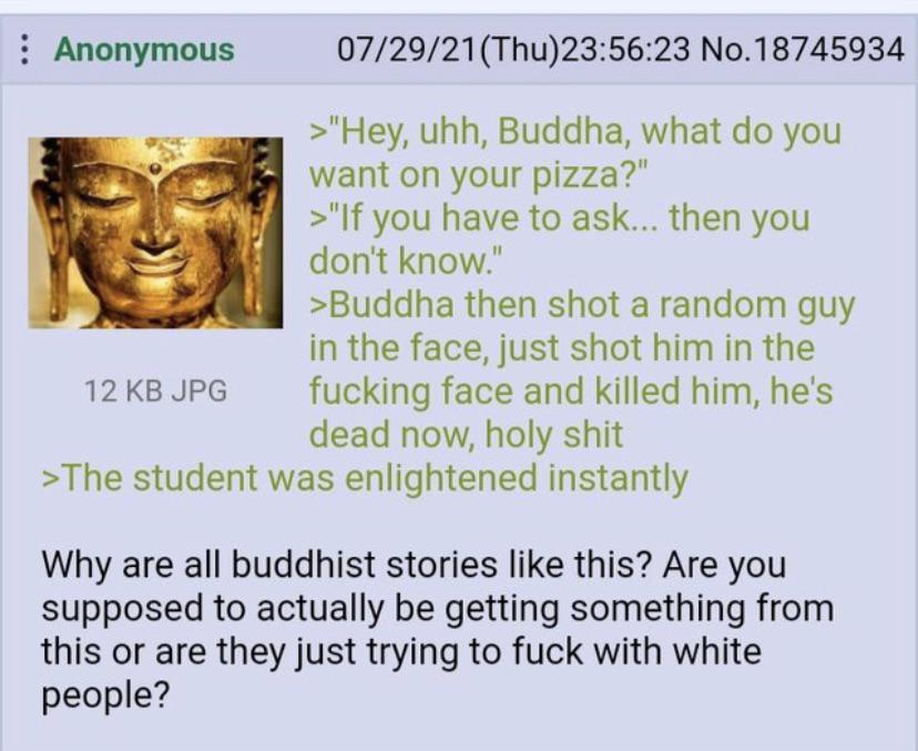 >>1146080 Это не all buddhist stories like this, это вообще не buddhist stories. Это пикабу стайл истории/притчи для выкладывания в паблик. Ни одному нормальному буддисту не придет в голову сочинять подобный бред/ На это могут купиться только люди бесконечно далекие от буддизма. И Серега Шторм.