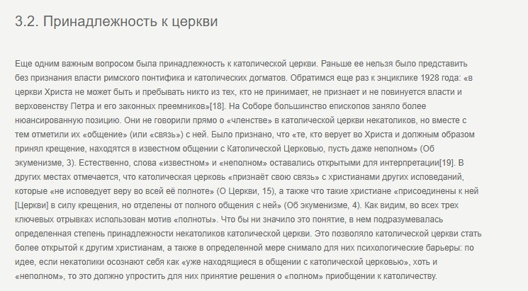 Все, что говорит и делает католический мейнстрим как минимум с 20 века прекрасно укладывается в учение II ВС. И на Библию, и на всю историю христианства с ним все ложится гораздо органичнее, чем без него. Просто понаблюдав за католиками, многие положения католического учения можно тупо предугадать, как если бы это был объективный закон природы. Это надо быть очень избирательным и предвзятым, чтобы годами такого не замечать.
