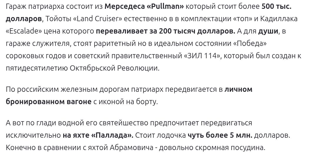 >>1153169 >то, сё, хуё-моё, пятое-десятое И опа, яхта у "патриарха", опа и часы за лям. На отопление, освещение и кагор должна быть определенная сумма, и сбор это суммы должен быть прозрачным. Например храму надо 50к в месяц на обеспечение работы храма и зп священникам. Зачем им собирать 300 тысяч? Понятно же , что лишнее они отдадут паханам на яхты, часы, телок и наркотики, и будут дальше клянчить у бедных прихожан. Поэтому сосите лапу, господа попы. >Ты в семье тоже такой халявщик? В семье я четко знаю куда идут мои труды и средства. А в случае с храмом я тоже догадываюсь куда- на яхты и оргии для попов, на оплату элитных шлюх. Разницу чуешь? Когда увижу что исключительно на отопление, освещение, кагор и зарплату священникам - тогда будет другой разговор. > хотят спастись. Спасатель хренов.
