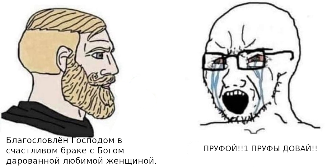 > Звучит, как какие-то социальные конструкции. Норм, это когда человек борется со страстями и постепенно меняет себя в лучшую сторону. Может всю жизнь "молиться и ходить в Церковь" и при этом вообще не меняться. А меняться в чем? средний анон это не исчадие ада, не лютый грешник, по сути все что может сделать(улучшить себя) средний анон это поменьше токсичить на двочах да поменьше дрюкать свою писюльку, или что ты вообще имеешь ввиду, поехать в Африку проповедовать ?