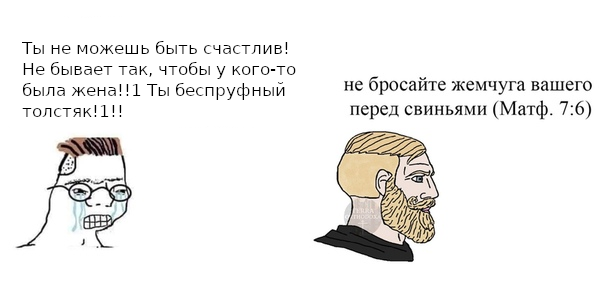 >>1153554 >Христос говорит о Себе как о женихе , а Церковь изображается в качестве Его жены и невесты Сова сейчас порвётся просто. Насколько же нужны призывники, лол . Попы совсем обезумели. К метафоре Иисуса как жениха и апостолов как девы приплести обязанность плодиться на благо родины. В общем спасибо , я ещё больше укрепился в своем мнении благодаря твои словам и нелепой попытке оправдать деторождение, которое не является обязанностью христианина . А в современном мире это просто глупо и неэтично. Советую всем рассказать своим друзьям христианам, имеющий уши да услышит.