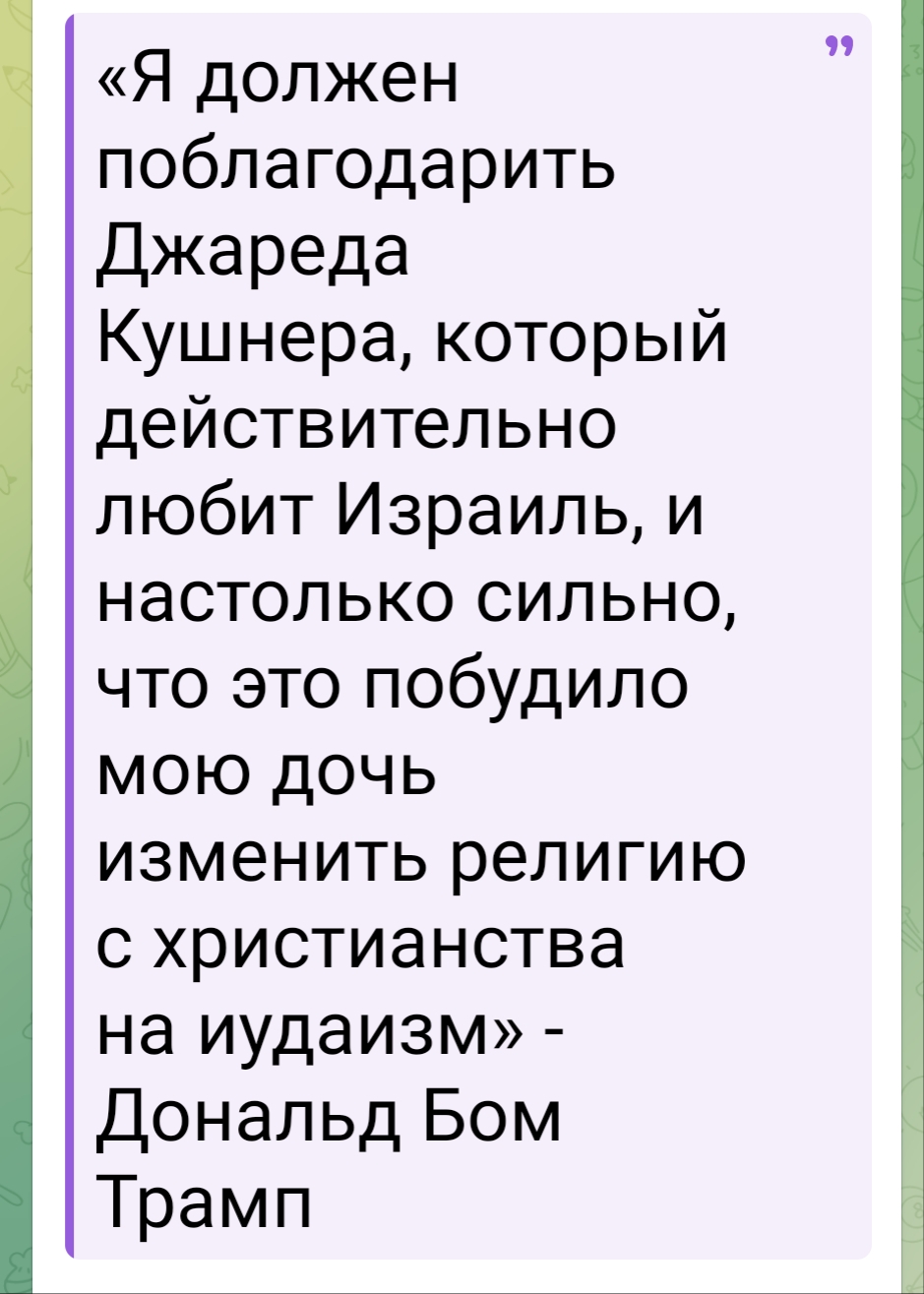 >>1155978 Анон выше верно заметил - Трампыня и его семья это дефолтные культурные христиане. Еще он может находиться под влиянием христиан-сионистов. А среди них особо упоротые на серьезных щах считают что талмудисты ближе к труъ-христианству, чем католики и другие исторические церкви.