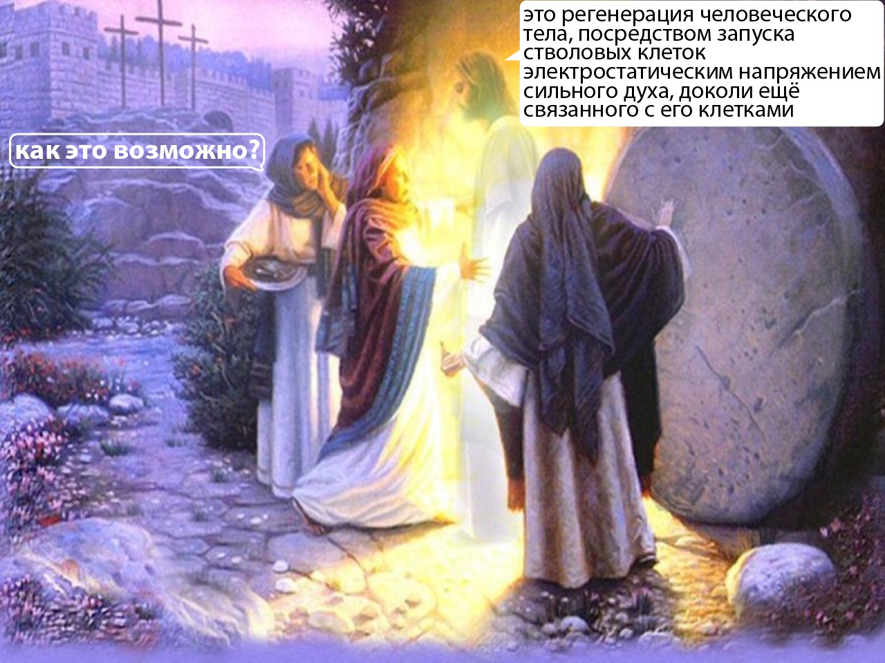 Подобным образом и христиане верят в телесное воскресение, плоть как-то должна опять собраться из праха. Какая-то магия, но религиозные люди не запрещают себе верить в сказки.