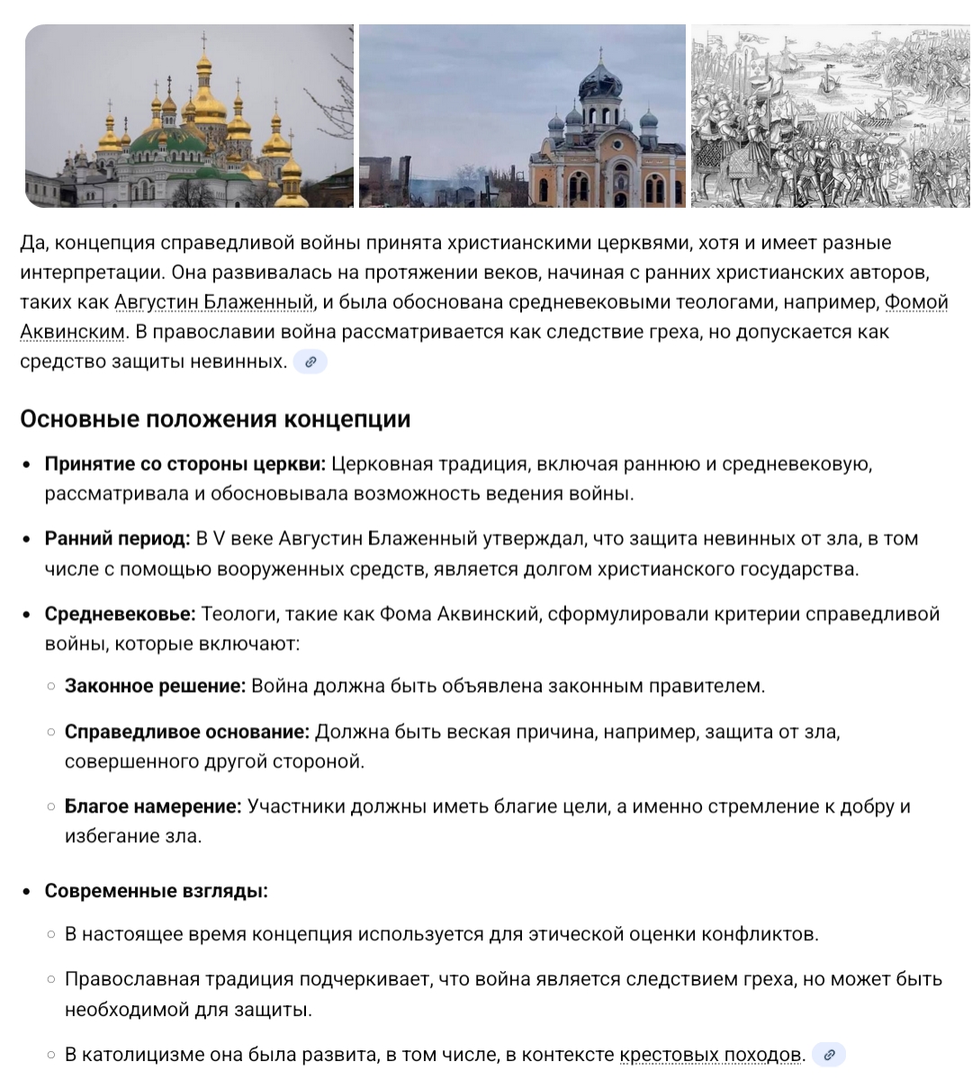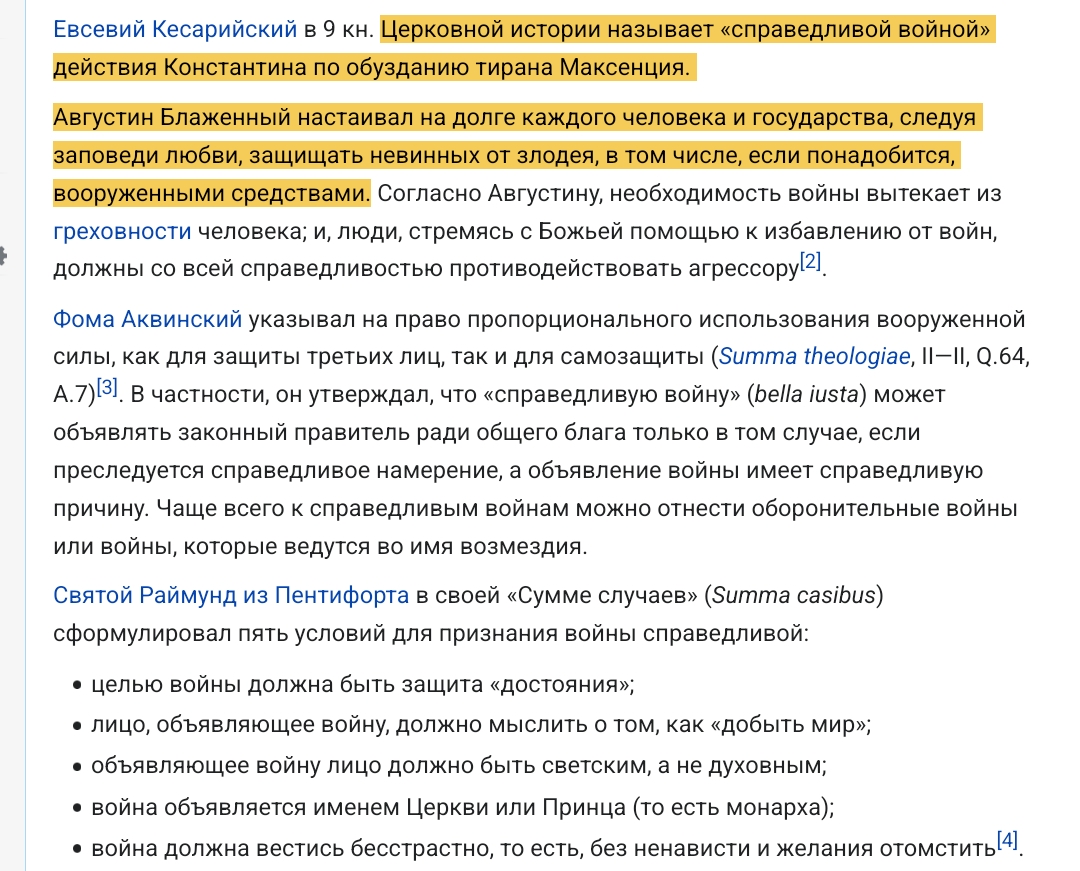 >Концепция справедливой войны полностью принята католиками и в основном разделяется протестантами Ну так иди к ним в тред, шо ты тут делаешь с предъявами за католицизм и протестантизм?
