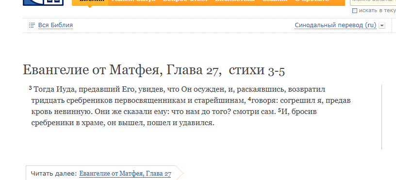 Куда Иуда бежал от ответственности? В ад что ли? Мне еще кажется(уверен на 90%), что ты этой херней пытаешься собственное предательство оправдать. Дескать Иуда не покаялся, а ты-то, такой же предатель, а покаялся. О раскаянье Иуды свидетельствуют слова Евангелия, а ты и их извращаешь себе в угоду. У самого в мозгах такие же извращения ,всё с нон на голову поставил, оболгал