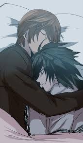 >>5516301 Л и Лайт/Рьюзаки спят в одной кровати, так как связанны одной цепью. Лайт засыпает в то время как Рьюзаки как обычно анализирует каждый его и свой шаг. Внезапно Лайт начинает ворочаться, и сонно поворачивается в кровати лицом к Л, а потом и вовсе прижимается к нему, обнимает его и начинает сонно гладить его по голове, бормоча себе что то под нос. Рука Лайта застревает в черных растрепаных волосах Рьюзаки. Л не ожидал такого, но ничего не предпринял, для него это было чем новым и странным. Ещё никто никогда не обнимал его. Он думал правда ли Лайт спит а не использует какую то тактику чтобы подобраться ближе и сдружиться с ним? Он терпеливо смотрел как тот кого он считал врагом, мило сопит у него на груди как ребенок. Через 5 минут таких объятий Лайт просыпается и вздрагивает, пятясь назад: Ааа, прости Рьюзаки, иногда я много ворочаюсь и обнимаю что то во сне... Рьюзаки понимает что Лайт все это время действительно спал, и спокойно говорит, желая продолжить испытывать эти новые чувства: Ничего Лайт...можешь продолжать...мне даже понравилось...