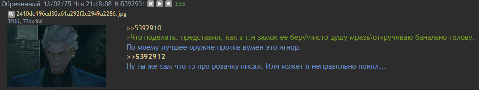 >>5516113 Но у тебя же не всегда так было и у тебя иногда неплохое настроение, по крайней мере так с виду кажется. У тебя именно что периоды такие упаднического всепропащенского настроения. У меня такое тоже накатывает. Хорошо, я тебя понял. Меня смутило (затриггерило) упоминание других людей, что ты себя с ними сравнил. У меня четкая ассоциация по былой памяти, что таким только залётные поломанные нормисы занимаются. Ведь у обреченных хикк не абстрактные, а конкретные и насущные проблемы. Так что ты уж не обижайся на меня >у себя на хате пока вторую сдаёшь и таблы глотаешь Это не так, это всего лишь легенда. Как на самом деле я живу я бы и рассказал, да только не в /rf, где недоброжелатели любую информацию запоминают и потом припоминают во время травли. Поэтому пусть уж лучше и дальше считают меня изимодником, второй вариант будет еще хуже, а травить будут в любом случае потому что озлобленные и гнилые людишки. То есть, даже если бы я был нищим всратоёблым инцелом и мечтал бы о тяночке как и они, это бы ничего не изменилось, я бы всё равно подвергался их нападкам, потому что тут несовместимость архетипов и такие как они всегда будут пытаться травить таких как я.