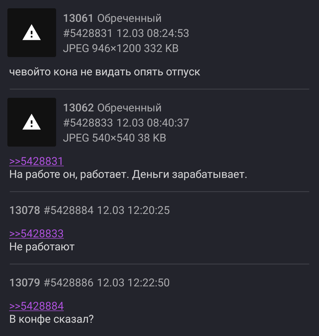 >>5518729 > Да уже забил, Синку.. Пока ты будешь обращать на них внимания, они и дальше будкт троллить. > А ты правда сидишь в некой т.н. Конфе?.. Нет никакой калфы, я этому >>5518712 подыграл. Точнее, скорее всего, калфа существует (я в ней не состою), потому что в калотреде какой-то анонимный постер обвинял кончелыгу в том (ну когда он еще тут сидел, где-то в марте, может, было это), что он что-то там в калфе написал, и что вот кончелыга плохой, Кон еще сюда заходил и жаловался, что его в калотреде анонимный постер обижает. Так что полагаю, что существует некая калфа, где есть постеры из этого раздела, даже один анонимный постер, когда уходил из раздела, написал длинный пост в котором еще упомянул, что здесь есть калфа травителей + кто-то скидывал скрин из тоже некой калфы в дрискорде (возможно это и есть та самая калфа).