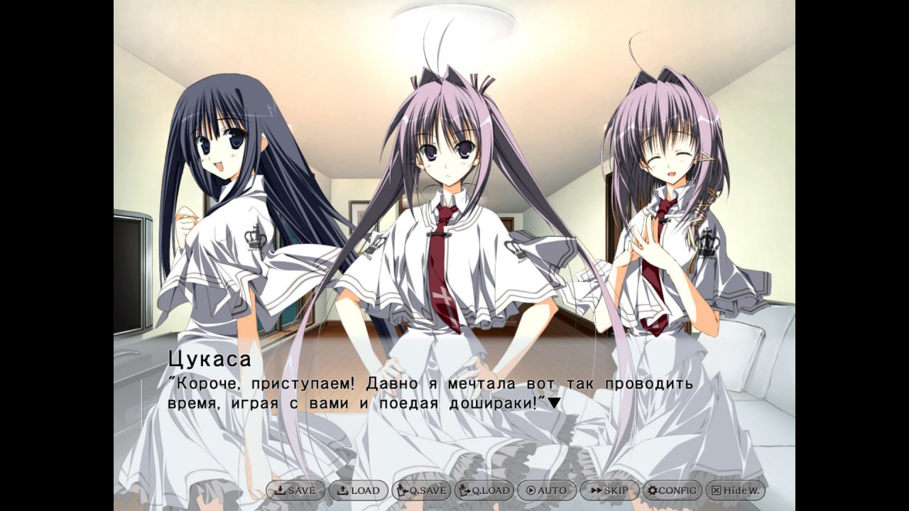 Короче, понял в чем дело с Субахиби была. Как я понял, 1 глава - это пролог и типа не связан с другими главами, и там 3 концовке, где 2 - это тупиковые и не переводят в следующую главу (я сначала на концовку Кагами прошел, ну щас уже концовку с Цукасой завершил), в следующую главу переводит лишь основная концовка. Ну и со 2 главы по идее и начинается Субахиби, про которую все говорят.