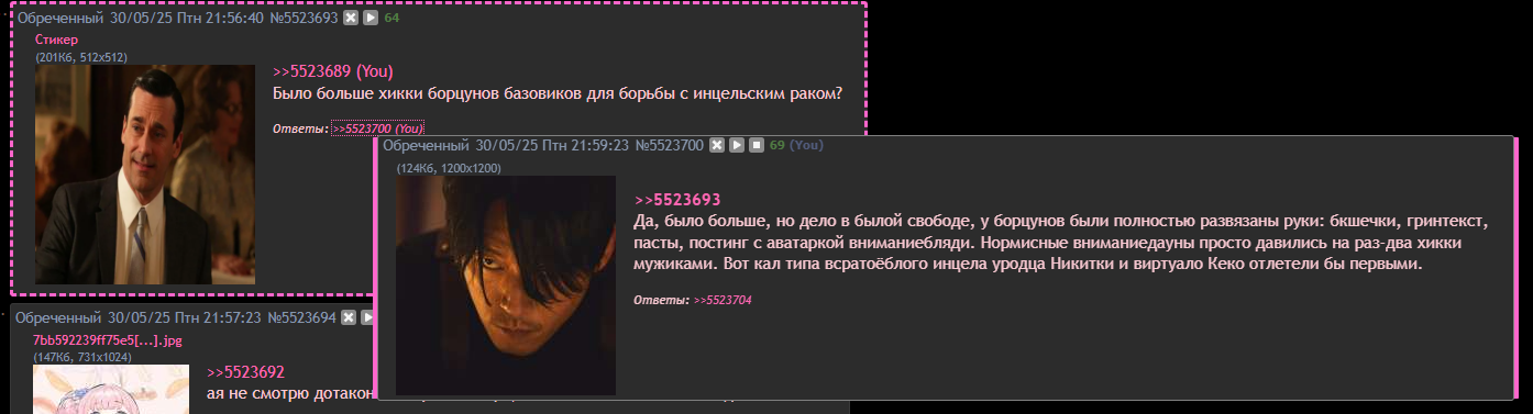 Короче это всё план авророчма и сёмговна (который мечтает о возрождении того самого ХиккиТреда). Постепенно всю массу и актив постеров из бесконечного перекатить в ХТ и выдавить отсюда законных владельцев - хикк. Их бесконечный уже почти исдох. Сейчас идет активная фаза давки хикк. Всё по плану конфы.