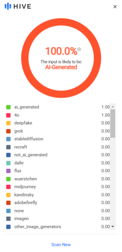 >>5523853 >Там была фотка с подписью если я ничего не путаю какое ai? Ты же сам проверил фотку и там AI 100% было, ты еще написал что повелся как дурак. >Просто фото там было, на хороший фотоаппарат, поэтому много весило Не, там на хороший фотоаппарат максимум 10 мб.. Там именно нейросеть много артефактов, шума и шлейфов от нейросети.